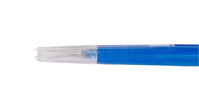 The completely new designed trocar system for vitreoretinal surgery comes in a set of 3 including silicone-oil-ready infusion terminal. The multifunctional cap can be used as scleral marker for 3 and 4mm as well as manipulation forceps. Specific surface treatment ensures stable wound positioning after easy insertion with ultra-sharp MVR knives.